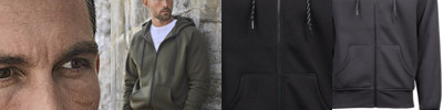 Three-thread fabric. Brushed inside. Ribs with elastane. Double dyed. Double stitched. Double pre-shrunk. SBS zip.